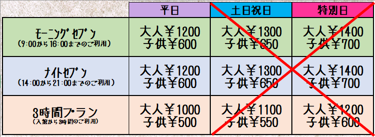 【改定内容】 土日祝日および当館指定日の料金を、平日料金へ引き下げ(全日一律化)
